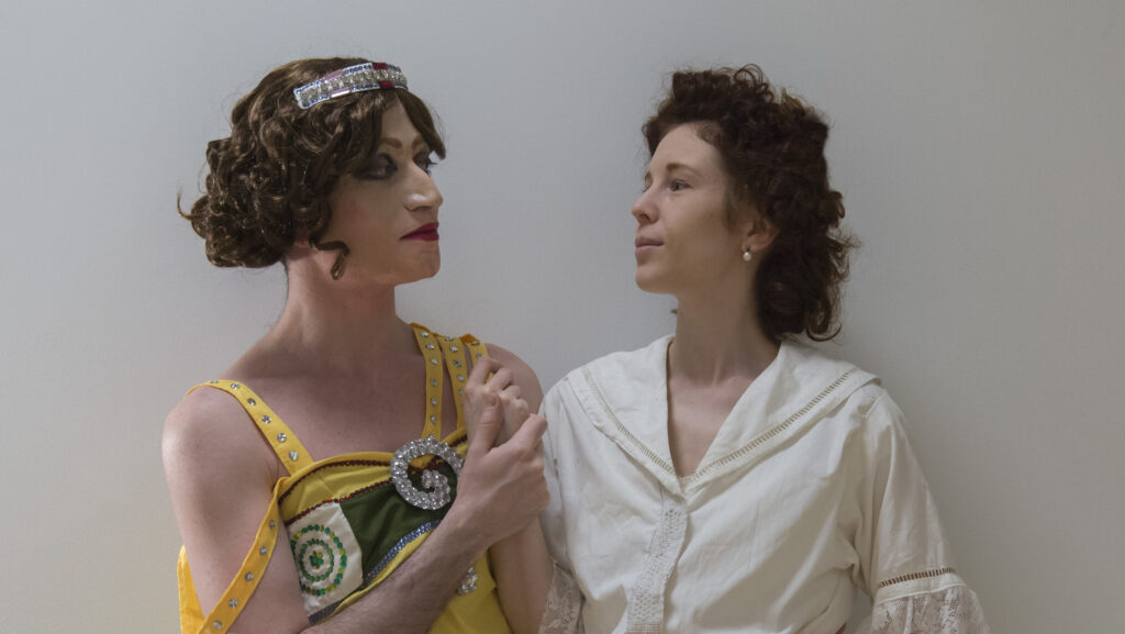 One side of the work shows how the couple interact backstage during the costume changes. The other side shows Di Lorenzo performing as Lind, in reimagined dance and singing acts. Simultaneously, we see Stephanie’s reaction as she watches her husband perform from the wings, and how she prepares for the upcoming costume change.